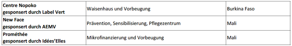 Die Assoziation möchte die Lebensbedingungen der am stärksten benachteiligten Menschen in der Stadt wie auf dem Lande in den Bereichen Gesundheit, Schulung, berufliche Ausbildung, und soziale Wiedereingliederung verbessern. Dazu gehören medizinische und soziale Betreuung für Kinder, die an Noma und Unterernährung leiden.
